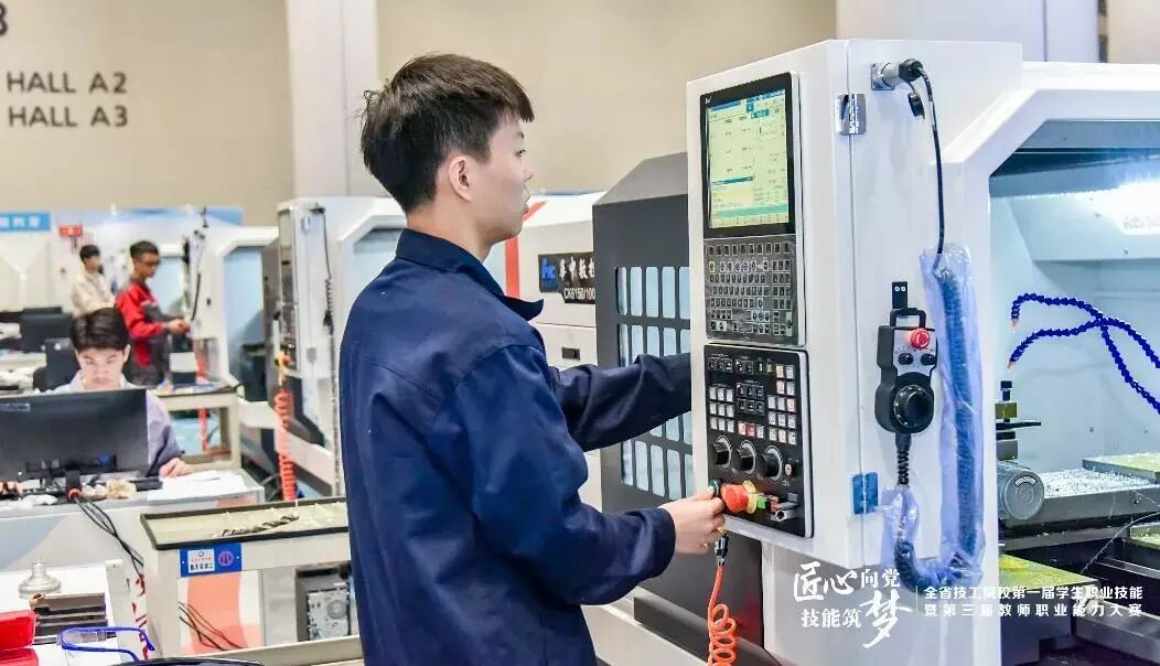 本次比赛中“数控车工”赛项的设备(配套HNC-818DiT数控系统的数控车床)来自华中数控,见证了未来数控人才的精彩比赛。